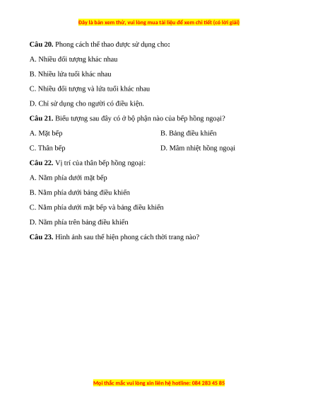 Câu 19. Trang phục mang phong cách thể thao có đặc điểm: A. Thiết kế đơn giản
