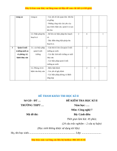 ĐỀ KIỂM TRA HỌC KÌ II TRƯỜNG THPT … Năm học: …. Môn: Công nghệ 7 Mã đề thi: Bộ: Cánh diều