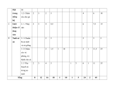 Mức độ nhận thức Tổng % dung thức Nhận biết Thông hiểu Vận dụng Vận dụng Số CH Thời tổng kiến cao gian điểm thức (phút) Số Thời Số Thời Số Thời Số Thời TN TL