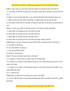 Câu 1. Sơ đồ khối mạch điện điều khiển có khối nào sau đây? A. Nguồn điện B. Thiết bị đóng, cắt C. Phụ tải điện