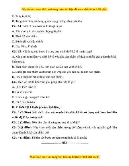 Đây là bản xem thử, vui lòng mua tài liệu để xem chi tiết (có lời giải)