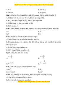Câu 11. Tốc độ quay của động cơ là chỉ số vòng quay của: A. Pít tông B. Trục khuỷu C. Thanh truyền D. Các te