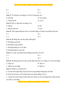 Câu 16. Hệ thống truyền lực nào sau đây phân loại theo vị trí động cơ và cầu chủ động? A. Thủy lực B. Thủy cơ C. Nhiều cầu chủ động D. Điện cơ