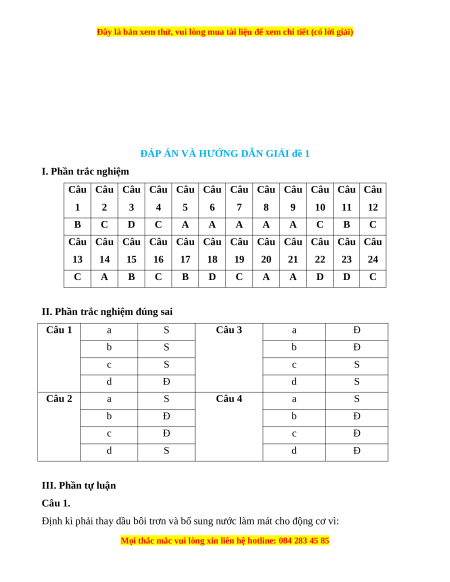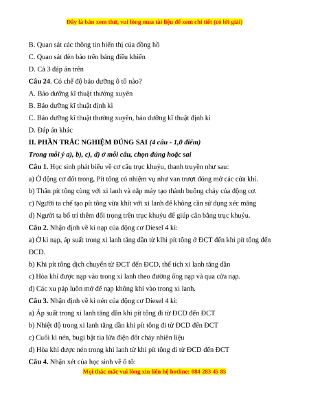 Câu 12. Đơn vị công suất của động cơ là: A. Mã lực B. kW C. Mã lực hoặc kW D. N.m