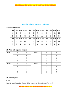 Họ, tên học sinh:..................................................................... Lớp: ............................. Đề số 1: