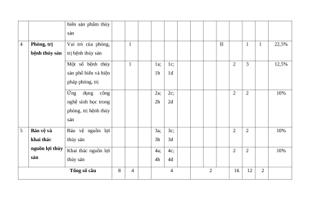 nguồn lợi thủy Khai thác nguồn lợi 4a; 4c; 2 2 10% sản thủy sản 4b 4d Tổng số câu 8 4 4 2 16 12 2