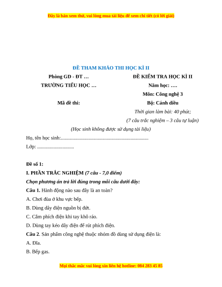 TÀI LIỆU BỘ BÁN CHẠY MÔN Công Nghệ