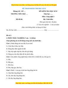 TRƯỜNG TIỂU HỌC … Năm học: …. Môn: Công nghệ 3 Mã đề thi: Bộ: Cánh diều