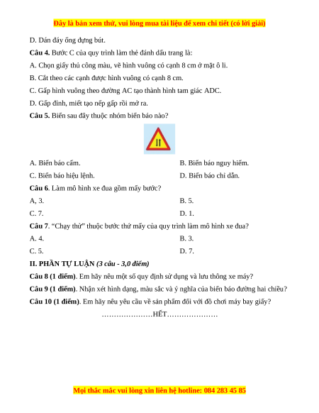 Đây là bản xem thử, vui lòng mua tài liệu để xem chi tiết (có lời giải)