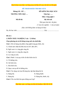 TRƯỜNG TIỂU HỌC … Năm học: …. Môn: Công nghệ 3 Mã đề thi: Bộ: Kết nối