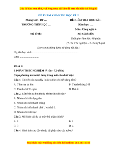 TRƯỜNG TIỂU HỌC … Năm học: …. Môn: Công nghệ 4 Mã đề thi: Bộ: Cánh diều