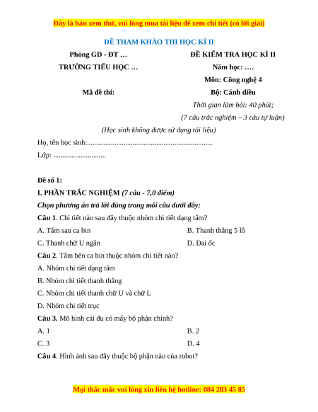 - Tailieugiaovien.com.vn giới thiệu bộ đề cuối kì 2 gồm đầy đủ ma trận và lời giải chi tiết môn Công nghệ lớp 4 Cánh diều mới nhất năm 2024 nhằm giúp Giáo viên có thêm tài liệu tham khảo ra đề thi Công nghệ lớp 4.