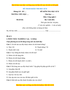 TRƯỜNG TIỂU HỌC … Năm học: …. Môn: Công nghệ 4 Mã đề thi: Bộ: Cánh diều