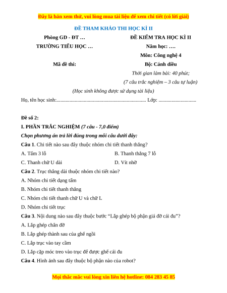 - Tailieugiaovien.com.vn giới thiệu bộ đề cuối kì 2 gồm đầy đủ ma trận và lời giải chi tiết môn Công nghệ lớp 4 Cánh diều mới nhất năm 2024 nhằm giúp Giáo viên có thêm tài liệu tham khảo ra đề thi Công nghệ lớp 4.