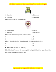 Câu 1. Chi tiết nào sau đây thuộc nhóm chi tiết thanh thẳng? A. Tấm 3 lỗ B. Thanh thẳng 7 lỗ C. Thanh chữ U dài D. Vít nhỡ