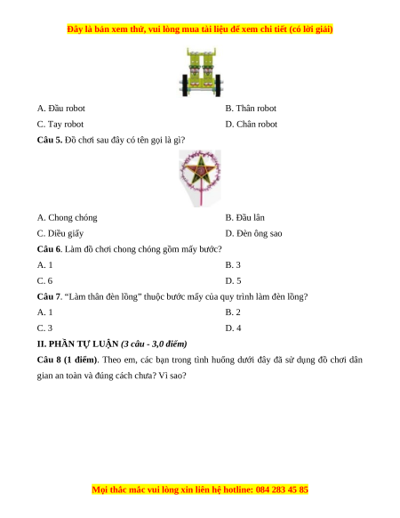 Câu 5. Đồ chơi sau đây có tên gọi là gì? A. Chong chóng B. Đầu lân C. Diều giấy D. Đèn ông sao