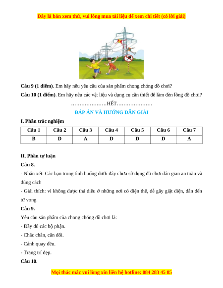 Câu 10 (1 điểm). Em hãy nêu các vật liệu và dụng cụ cần thiết để làm đèn lồng đồ chơi?