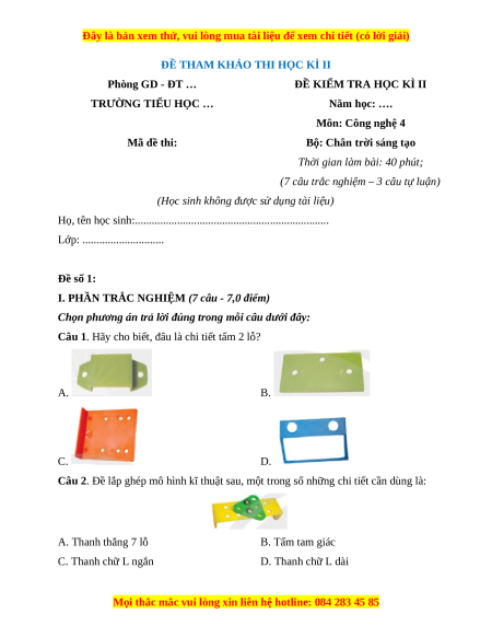 - Tailieugiaovien.com.vn giới thiệu bộ đề cuối kì 2 gồm đầy đủ ma trận và lời giải chi tiết môn Công nghệ lớp 4 Chân trời sáng tạo mới nhất năm 2024 nhằm giúp Giáo viên có thêm tài liệu tham khảo ra đề thi Công nghệ lớp 4.