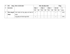Mức độ nhận thức Tổng T kiến thức Mức 1 Mức 2 Mức 3 Số CH % TN TL TN TL TN TL TN TL điểm 1