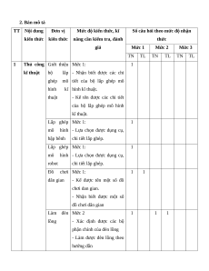 Làm chuồn chuồn thăng bằng 1 1 1 1 20% Tổng 5 1 2 1 1 7 3 Tỉ lệ (%) 60 % 30 % 10 % 100% 2. Bản mô tả TT Nội dung Đơn vị