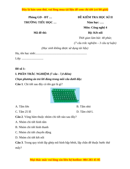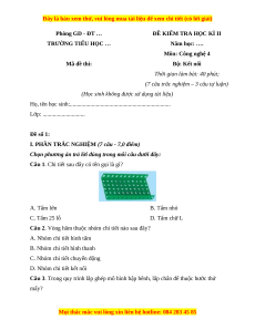 TRƯỜNG TIỂU HỌC … Năm học: …. Môn: Công nghệ 4 Mã đề thi: Bộ: Kết nối