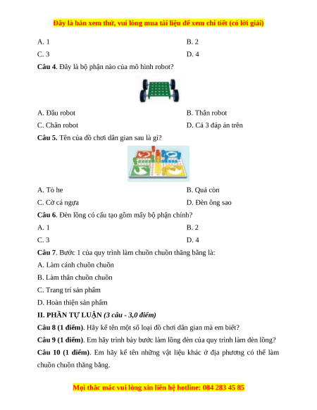 Câu 6. Đèn lồng có cấu tạo gồm mấy bộ phận chính? A. 1 B. 2 C. 3 D. 4