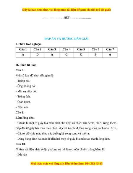 Câu 9 (1 điểm). Em hãy trình bày bước làm lồng đèn của quy trình làm đèn lồng?