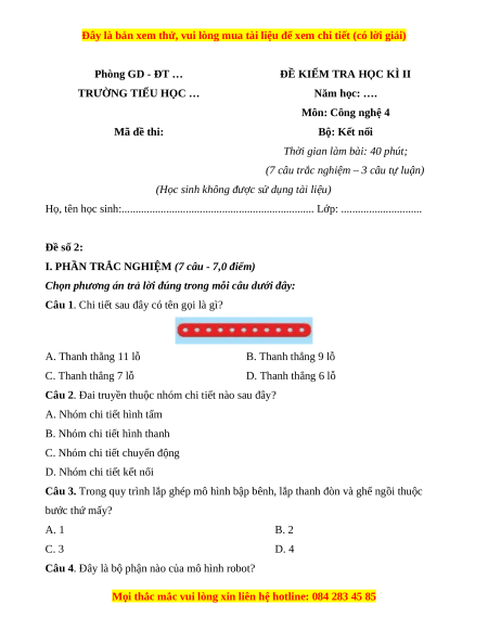 - Tailieugiaovien.com.vn giới thiệu bộ đề cuối kì 2 gồm đầy đủ ma trận và lời giải chi tiết môn Công nghệ lớp 4 Kết nối tri thức mới nhất nhằm giúp Giáo viên có thêm tài liệu tham khảo ra đề thi Công nghệ lớp 4.