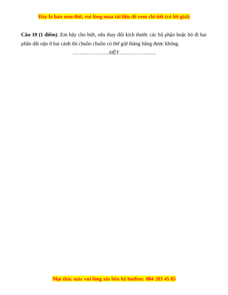 Câu 10 (1 điểm). Em hãy cho biết, nếu thay đổi kích thước các bộ phận hoặc bỏ đi hai