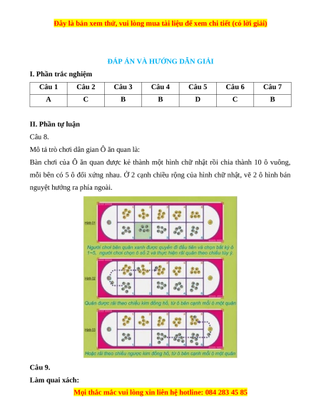 Câu 8 (1 điểm). Em hãy mô tả trò chơi dân gian Ô ăn quan?
