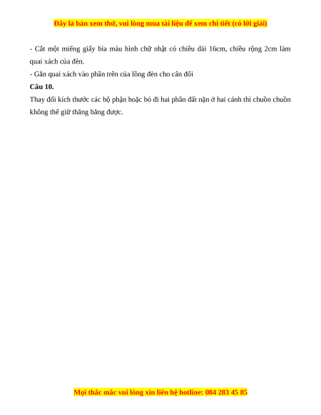 Câu 9 (1 điểm). Em hãy trình bày bước làm quai xách của quy trình làm đèn lồng?