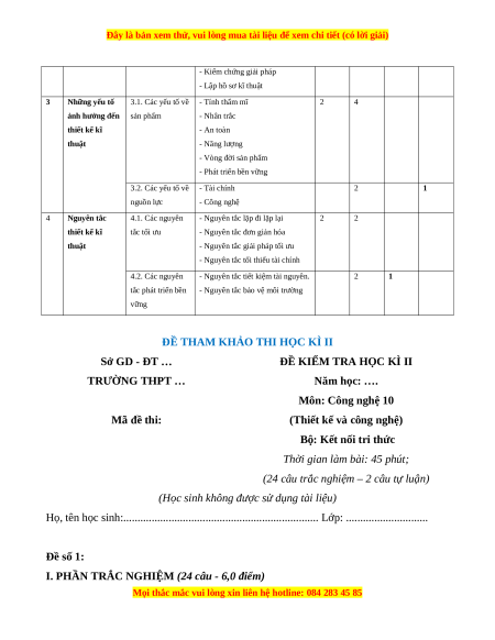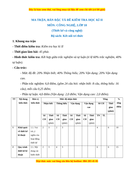 - Tailieugiaovien.com.vn giới thiệu bộ đề cuối kì 2 gồm đầy đủ ma trận và lời giải chi tiết môn Công ngệ thiết kế 10 Kết nối tri thức mới nhất năm 2023 - 2024 nhằm giúp Giáo viên có thêm tài liệu tham khảo ra đề thi Công nghệ lớp 10.