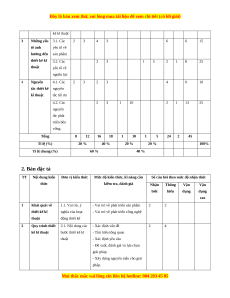 - Hình thức kiểm tra: Kết hợp giữa trắc nghiệm và tự luận (tỉ lệ 60% trắc nghiệm, 40% tự luận). - Cấu trúc: