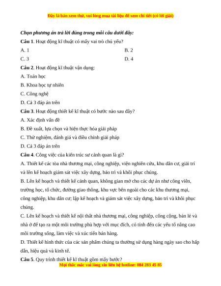 Câu 2. Hoạt động kĩ thuật vận dụng: A. Toán học B. Khoa học tự nhiên C. Công nghệ D. Cả 3 đáp án trên
