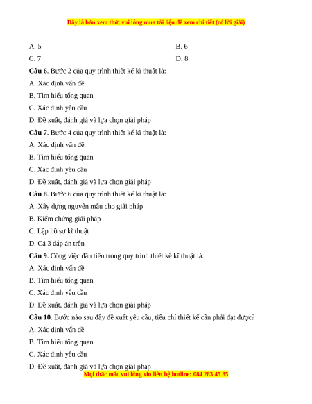 Câu 5. Quy trình thiết kế kĩ thuật gồm mấy bước?