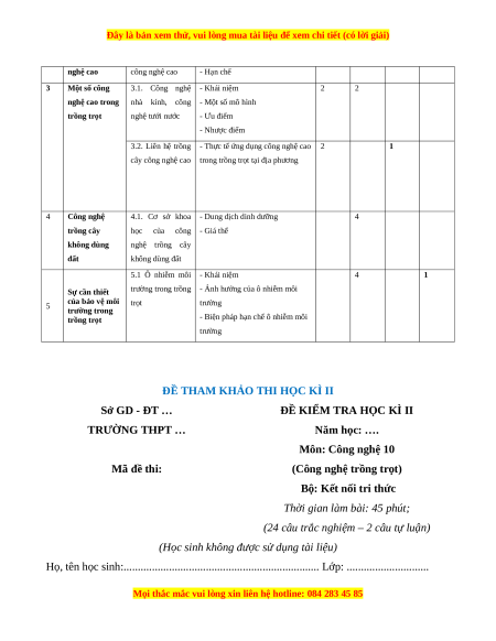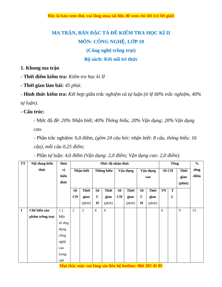 - Tailieugiaovien.com.vn giới thiệu bộ đề cuối kì 2 gồm đầy đủ ma trận và lời giải chi tiết môn Công ngệ trồng trọt 10 Kết nối tri thức mới nhất năm 2023 - 2024 nhằm giúp Giáo viên có thêm tài liệu tham khảo ra đề thi Công nghệ lớp 10.
