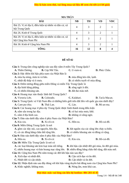 Đây là bản xem thử, vui lòng mua tài liệu để xem chi tiết (có lời giải)