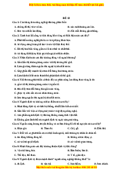 Câu 9: Ngành dịch vụ được mệnh danh “ngành công nghiệp không khói” là A. du lịch. B. vận tải. C. bảo hiểm. D. bưu chính.