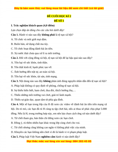 Câu 1 (1,0 điểm): Tệ nạn xã hội là gì? Em hãy kể tên những tệ nạn xã hội phổ biến.