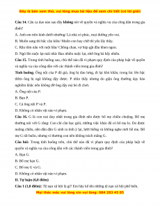 Câu 15. Trong tình huống sau, chủ thể nào đã vi phạm quy định của pháp luật về quyền