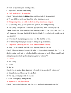 Câu 2. Pháp luật Việt Nam không nghiêm cấm hành vi nào sau đây?