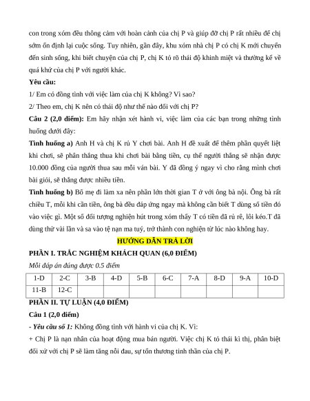 + Chị P là nạn nhân của hoạt động mua bán người. Việc chị K tỏ thái kì thị, phân biệt