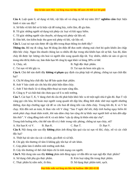 Câu 11. Gần tết Nguyên đán, anh M được anh X rủ cùng mua vật liệu về nhà tự quấn pháo để bán. Nếu