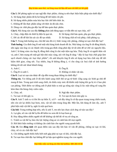 Câu 7. Trong tình huống sau, chủ thể nào đã có ý thức trong việc phòng, chống tai nạn chất độc hại?