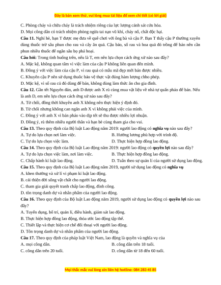 Câu 17. Theo quy định của pháp luật Việt Nam, lao động là quyền và nghĩa vụ của A. mọi công dân. B. công dân trên 18 tuổi. C. công dân trên 20 tuổi.