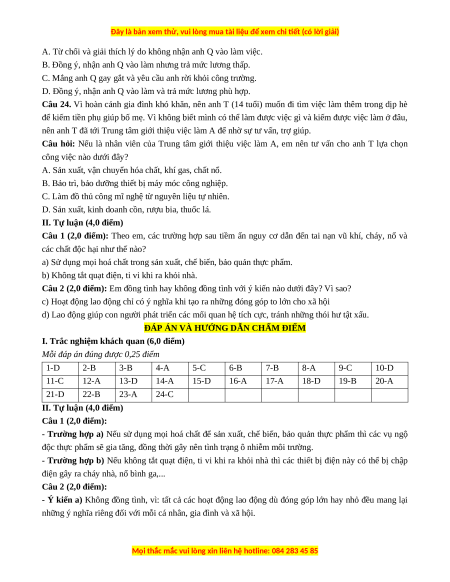 Câu 23. Anh Q (17 tuổi) có sức khỏe tốt. Do hoàn cảnh gia đình khó khăn, nên anh Q đã đến công