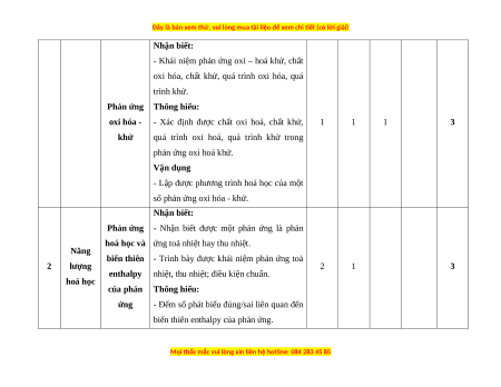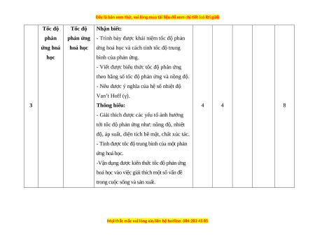 - Nêu được ý nghĩa của hệ số nhiệt độ Van’t Hoff (γ). 3 Thông hiểu: 4 4 8