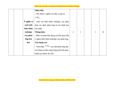 biến thiên thu nhiệt. enthalpy Thông hiểu: 2 1 1 4