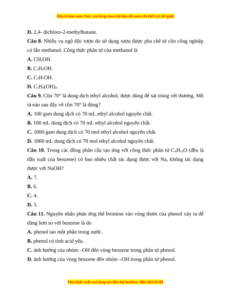 Câu 8. Nhiều vụ ngộ độc rượu do sử dụng rượu được pha chế từ cồn công nghiệp