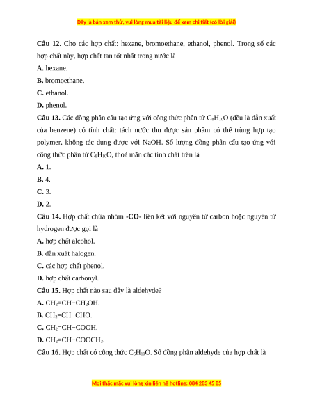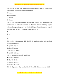 Câu 12. Cho các hợp chất: hexane, bromoethane, ethanol, phenol. Trong số các